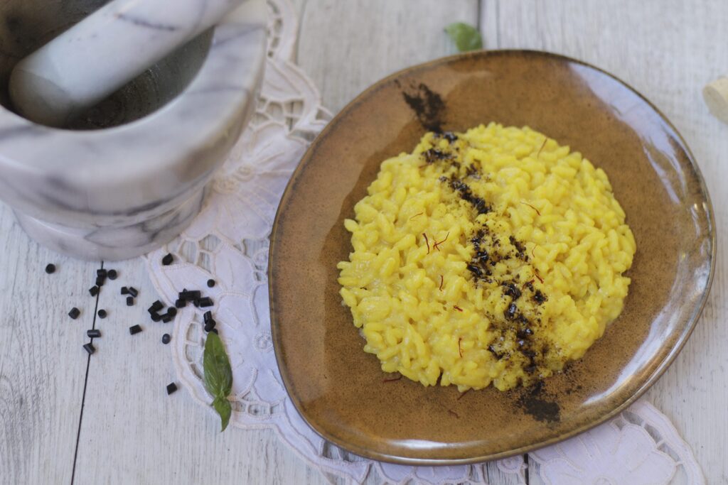 Saffron and licorice risotto, or rather very fragrant saffron pistils. I admit I love risottos, so I’m biased in saying it’s special, let alone I also love plain rice… clinic stuff! I heard about this recipe from my family and immediately my curiosity was piqued like a light bulb, I have to try it immediately. Said and done, I got all the main ingredients and got to work. For rice, I used Carnaroli from the ‘superfino’ group, one of the most well-known and used varieties in cooking. Italy is the leading European producer of rice, with many crops concentrated in Piedmont and Lombardy. The numerous varieties can be categorized into four major categories that naturally take into account the characteristics of the grain according to length, consistency, and shape, which are: