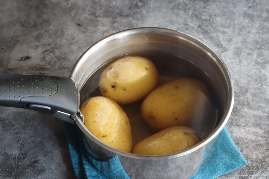 Boil the potatoes for 30 minutes in cold water over high heat.
