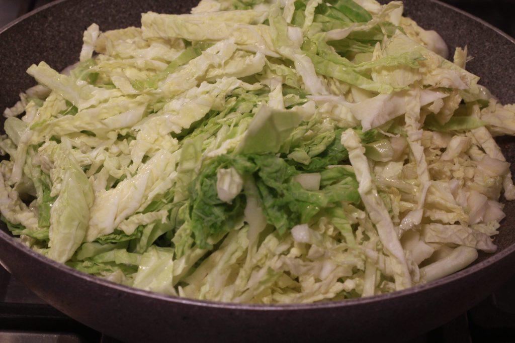 Cut from the core the outer leaves, halve the savoy cabbage and slice it thinly. Do the same with the radicchio.