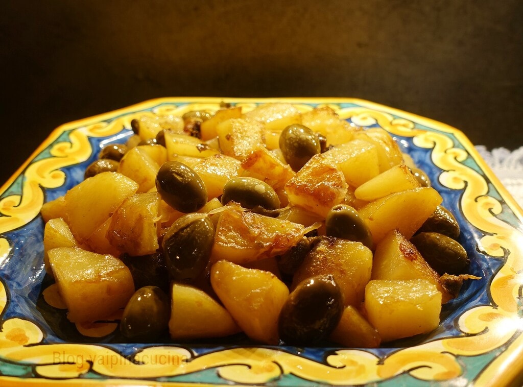 Potatoes Sicilian styled, a simple yet very rich side dish also known as potatoes alla siracusana. The name ‘styled’ conveys the concept better: A simple dish of potatoes made more appetizing enriched with olives, onions, and capers. Let’s go to Sicily, where even a simple side dish of potatoes becomes a super dish. The sugar and vinegar reveal it’s sweet and sour, a characteristic of many Sicilian dishes, also found in Caponata. You will find this recipe in the hot side dishes category, but in reality, this dish is equally delicious served cold, thanks to its sweet and sour flavor. On my blog.giallozafferano.itvaipinacucina, there will be other typical Sicilian recipes and more, including fish recipes that go well with Sicilian styled potatoes.