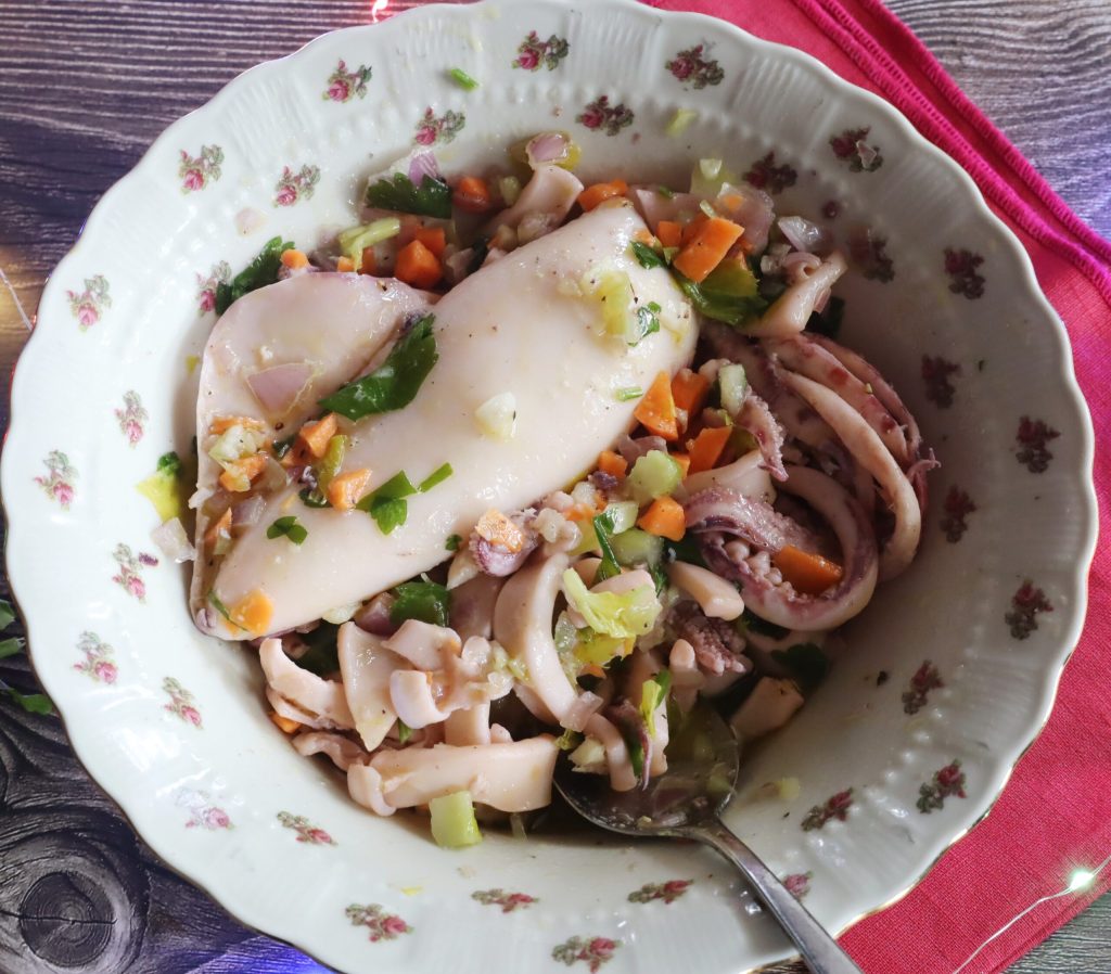 Here is my simple squid salad ready.
