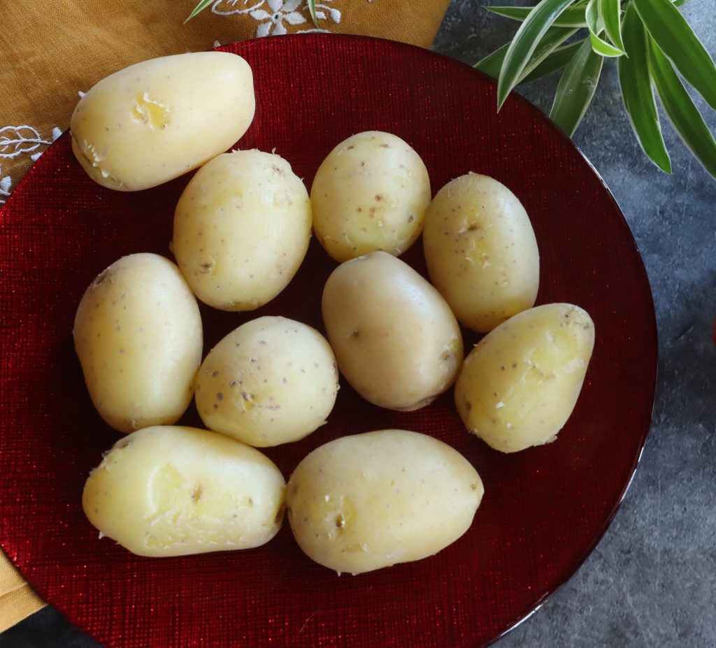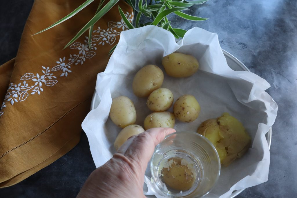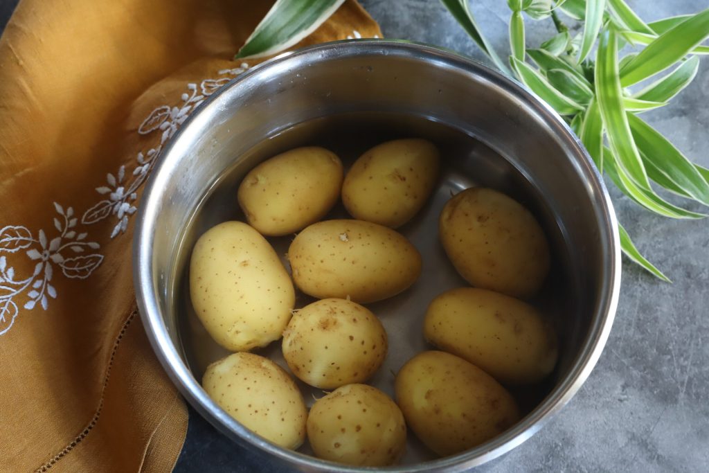 • I don’t peel the potatoes because they are new potatoes, but I scrub them well to remove any traces of soil.
