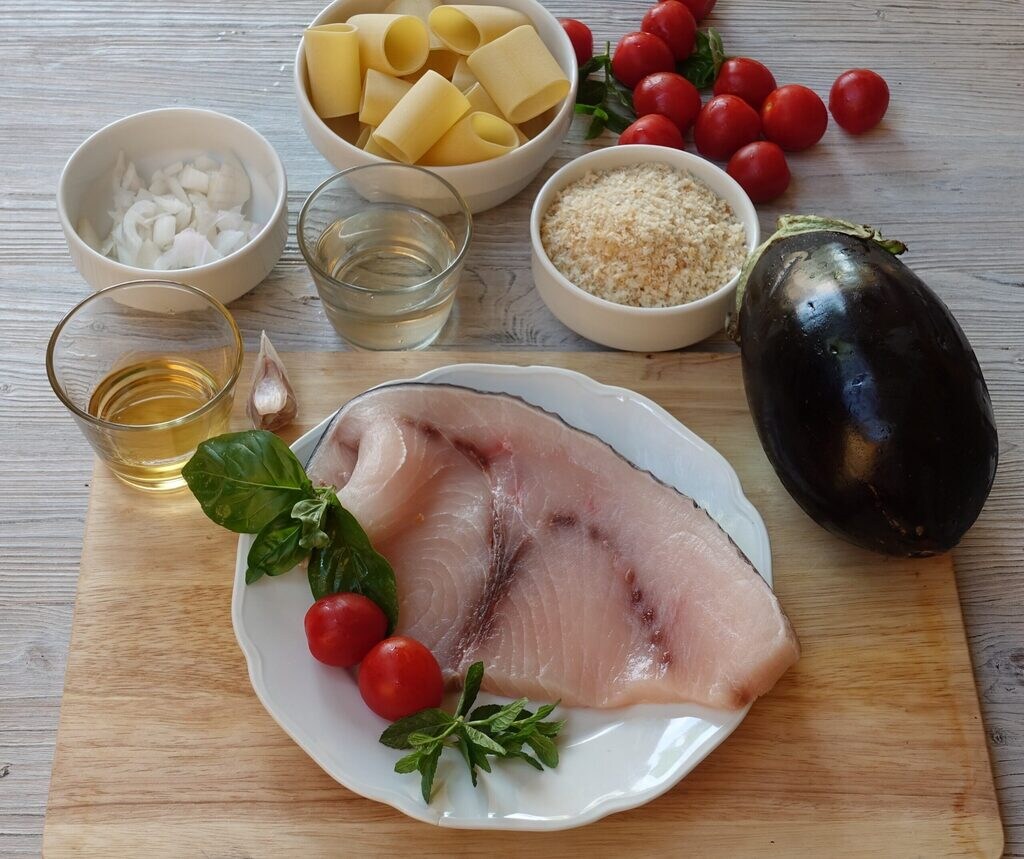 Ingredients needed to prepare swordfish and eggplant paccheri
