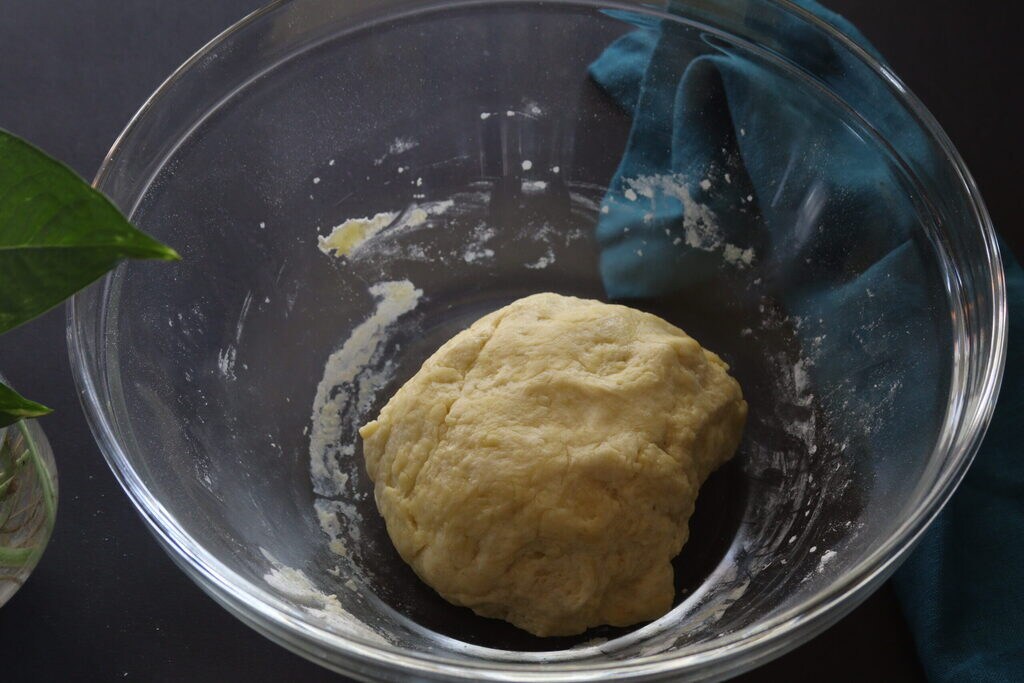 Finally, knead the ingredients by hand and then transfer to the work surface. Cover and let rest for a few minutes.