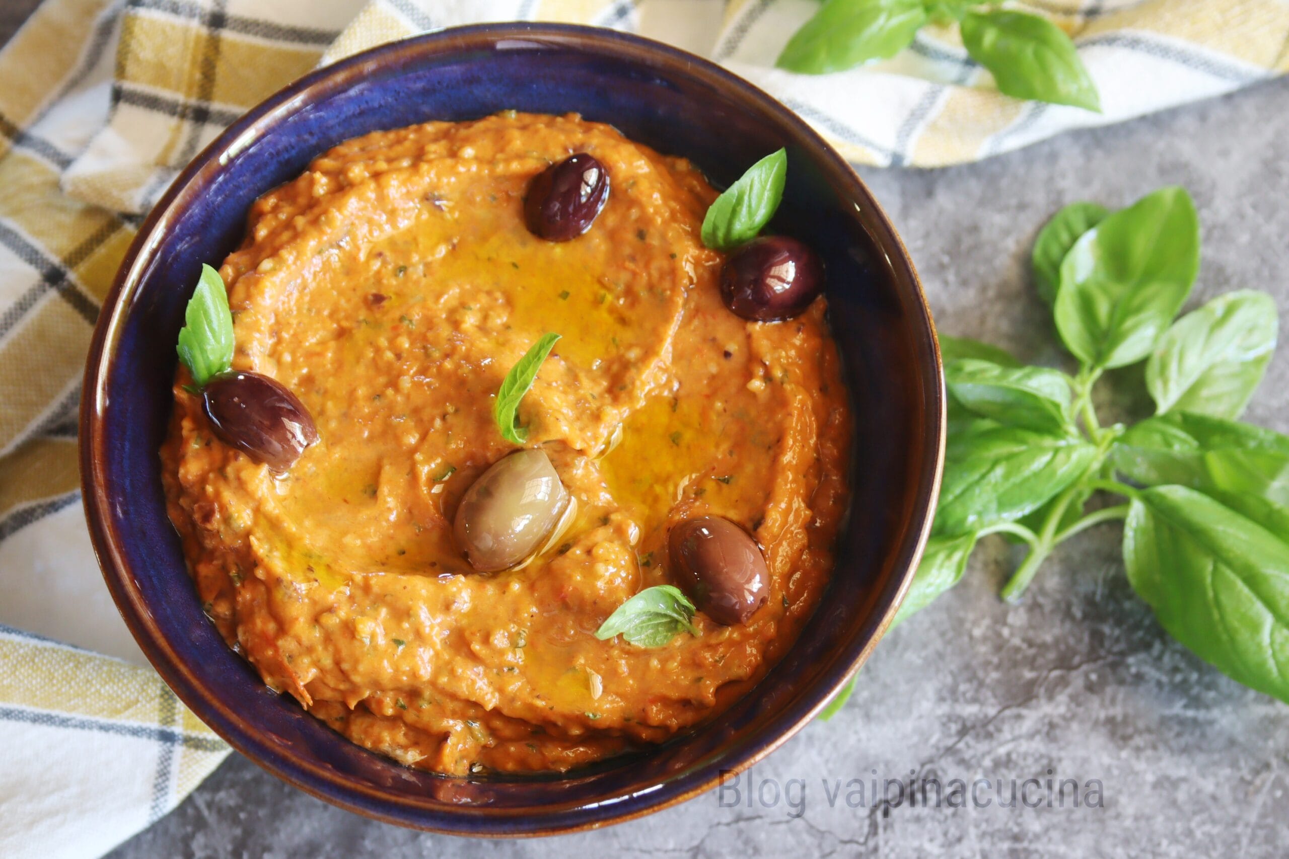 Quick and no-cook Tuna, Olive, and Bell Pepper Pesto if you have ready bell peppers, otherwise prepare them first and make the pesto when they’re cold. They’re fine even if they’re from the day before. Sometimes improvising an appetizer or aperitif with friends or family is really simple, it takes little. For my pesto, I used almonds, but know that cashews, pine nuts, or hazelnuts will work great too. A terrace, an aperitif with pesto crostini, and it’s instantly summer.