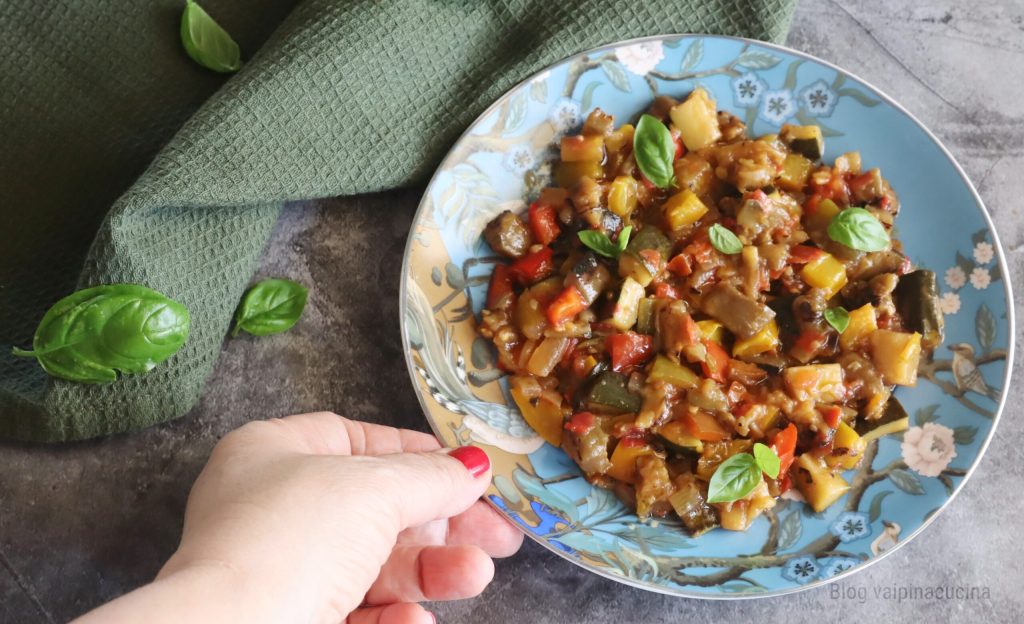 Vegetable caponata lasts for six days in the refrigerator. Make sure not to reheat it and then store it again. Usually, if you want to eat it hot, you take out an amount, heat it, and consume it without putting it back in the fridge.