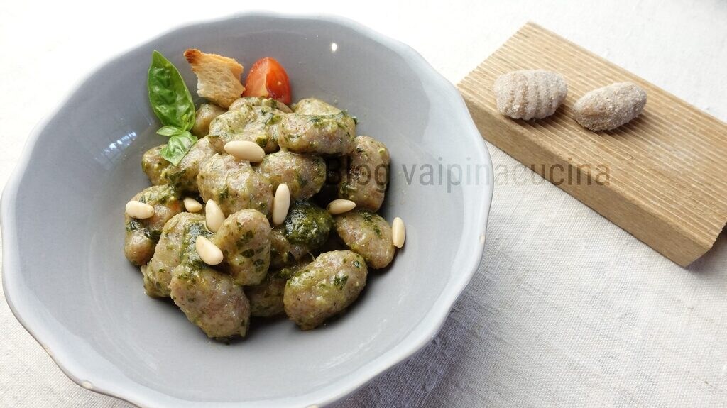 Whole Wheat Gnocchi with Pesto, let’s try our pesto made just a week ago, for those who want the Genovese Pesto recipe, you can click directly here. Today for my whole wheat gnocchi with pesto, I chose whole wheat flour, an experiment, I would say a successful one! To dress the whole wheat gnocchi, I thought of my Genovese Pesto which I usually prepare at the end of summer and store in glass jars portioned for two in the freezer, very convenient and practical. Whole wheat gnocchi with pesto is a very simple and quick preparation like the classic ones, with the variant of whole wheat flour. Another way to dress the very good whole wheat gnocchi is with Treviso radicchio baked in the oven and stracchino cheese or with a fondue of fresh cheeses and parmesan. You can find more quick and practical recipes on the blog.giallozafferano.itvaipinacucina.