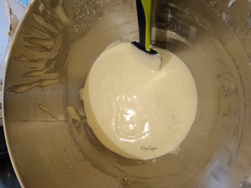 Beat the sugar with the eggs until you get a frothy mixture, it will take about seven minutes…