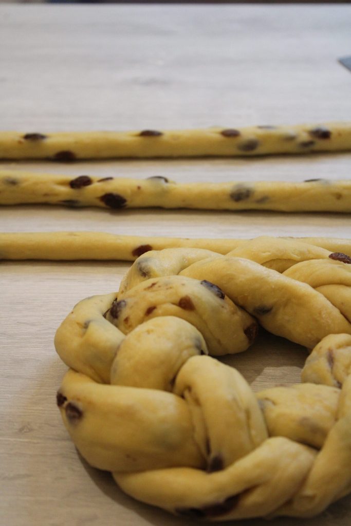 Shape your buccellato, make sticks, and braid them, then form crowns as in the picture.