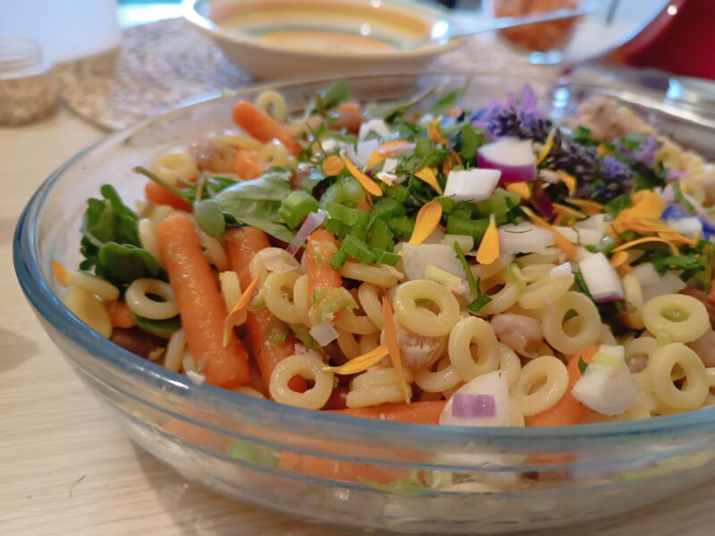 Cold pasta, fragrant vegetables, and summer aromas