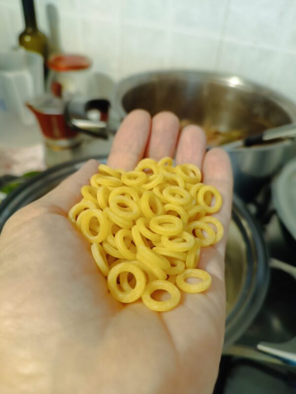This morning, leaving home… Looking at the high sun, I decided what to make for dinner; it had been a few days since I had the packet of anellini in my hands, which I had actually bought to make a Sicilian timballo, now I have an excuse to repurchase the same pasta and an extra dish to prepare.