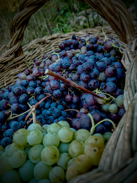 Grapes, I used mixed grapes: Barbera, Dolcetto, and Cortese, a few bunches of Hamburg Muscat…