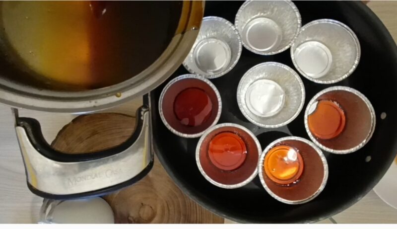 • Immediately pour into the molds that you have already arranged in the bain-marie tray.