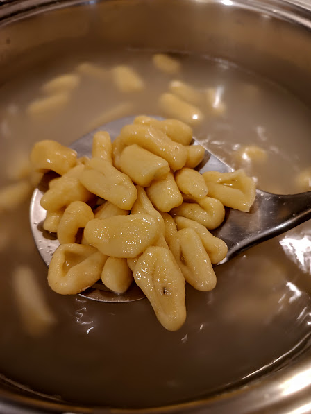 • In the meantime, bring the cooking water to a boil with the added salt and cook the croset for about five minutes… Check the cooking anyway, each flour has its own characteristics. Drain and