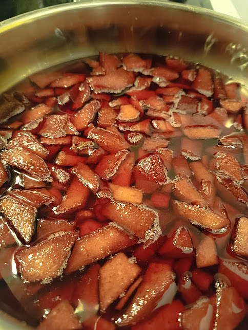In the morning, drain and add the sugar and cloves, mix and let them macerate until the next morning. Leave them uncovered.