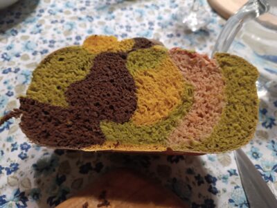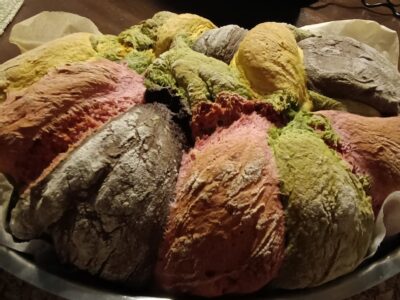 I had seen colored breads before, in this version I find emotion, precisely because of the intensity of the colors and the cut that changes the geometry of contrasts.