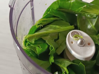 Blend the chard raw and place in a bowl, do the same with the beet, using a splash of water if needed (The water you’ll use for the dough)