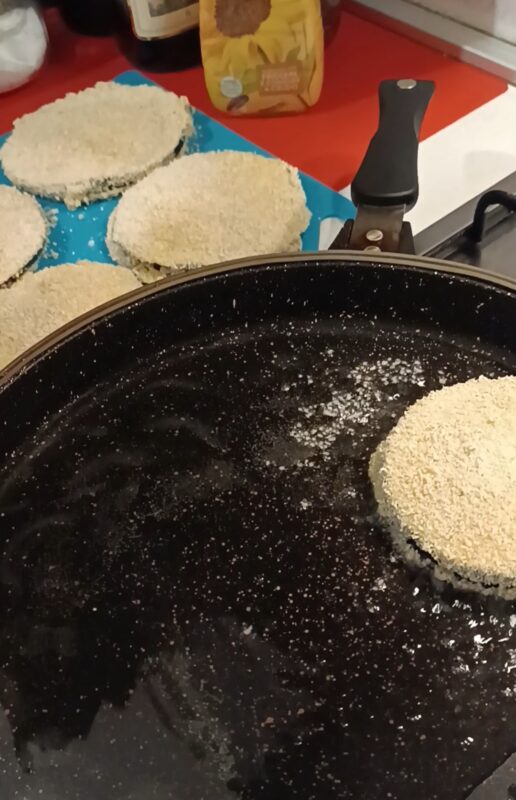 It had been a few days that I wanted to make mozzarella in carrozza, I had already prepared what I needed for dinner… After work, I stopped by the greengrocer and saw a beautiful purple eggplant, much larger than my own, and I was captivated by its beauty!