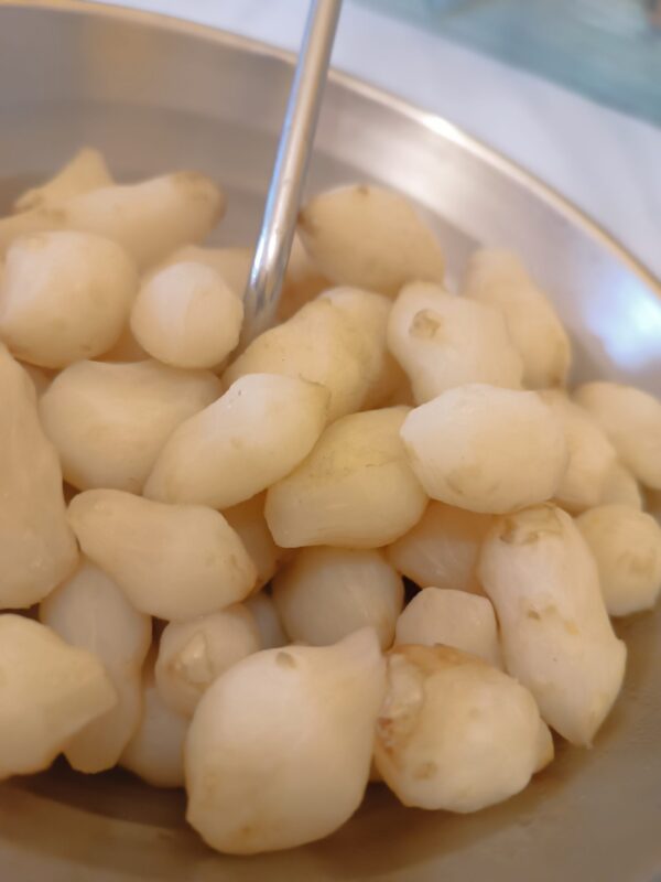 The Jerusalem artichokes, on the other hand, come from my garden; when I first set foot in this small plot intended for parking, among other plants dear to me, I also found some Jerusalem artichoke plants, so I continued to cultivate them, creating a small barrier; thus every year they give me the right amount to consume; fresh, crunchy, and fragrant tubers at zero km.