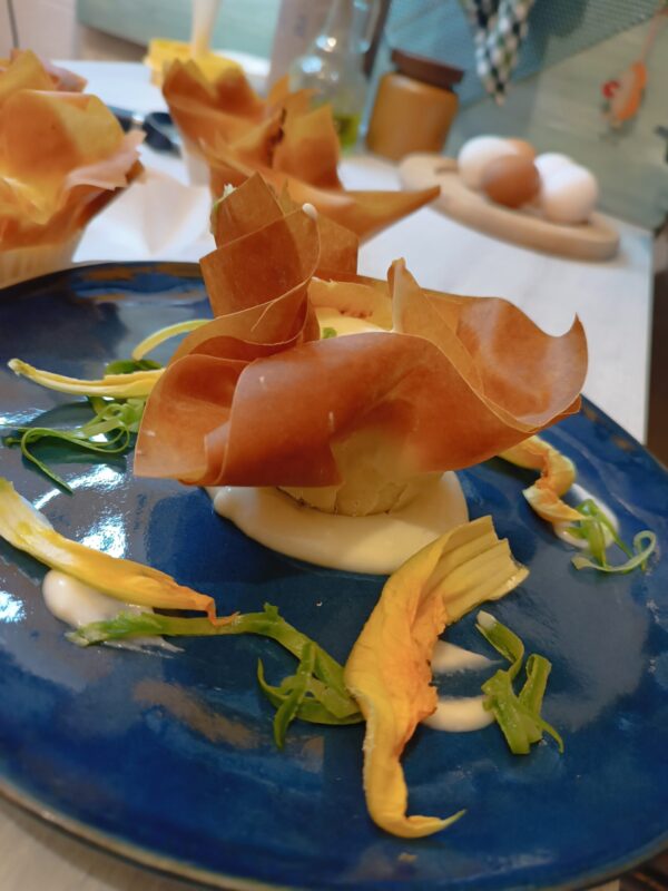 I make the phyllo pastry at home, with the usual recipe I use for other preparations; a paper-thin, light, crispy, and versatile dough; you can also buy it ready-made.