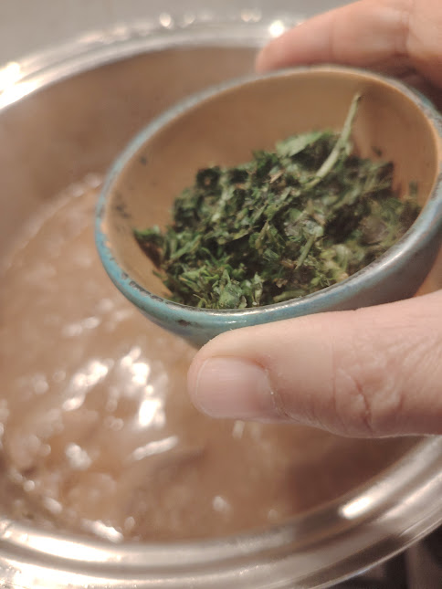 - 1 tea cup mushrooms (I use a mix. I use mushrooms collected and preserved in freezer after blanching. Dried mushrooms work too.)