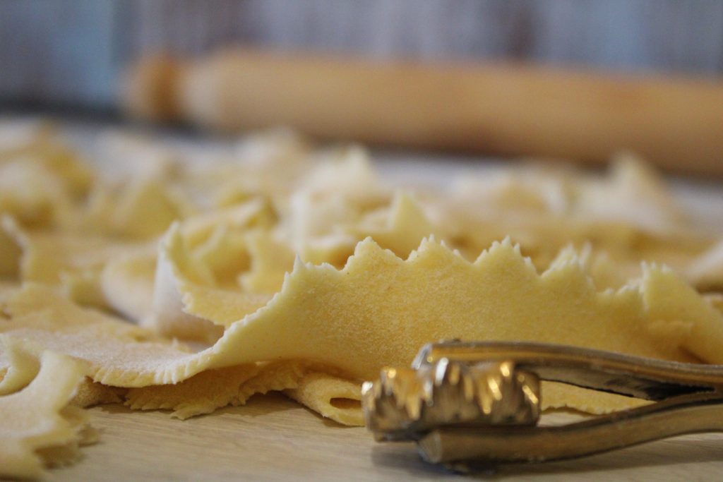 • With the flour and eggs, make a consistent dough and roll out the dough; I did it manually, but a machine works fine too. Cut the pappardelle and if you like, scallop with the rudigliu, which in Sardinia is used to decorate some traditional breads or pasta, and even incredible sweets.
