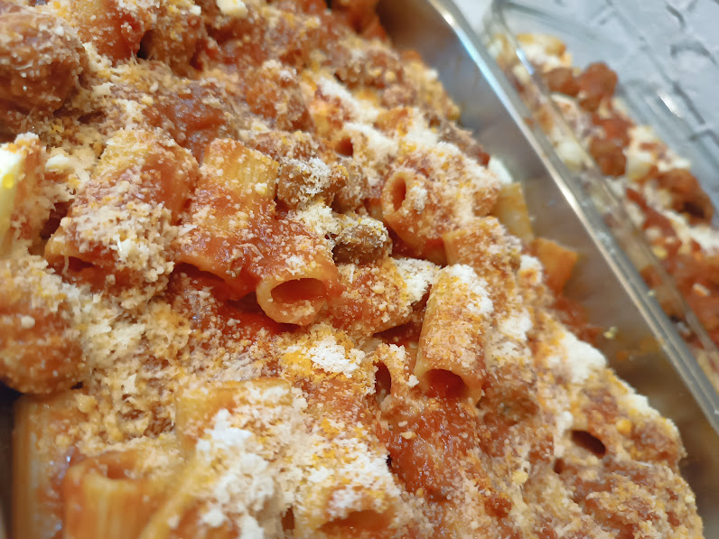So, a baked pasta that you won’t forget, from festive Sundays, big lunches…Filled with savory and essential ingredients. A baked pasta dish found in southern Italy, full of color and flavor, using local produce. I believe there isn’t a specific recipe; every family has its own, a rich and somewhat old-fashioned first course or perhaps sought after for that festive and homely meal.