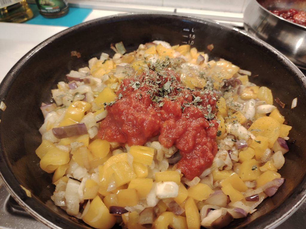 Prepare the dough even a day in advance, closed in an airtight container, it doesn’t pose any problems, indeed, it gains elasticity. Wash and clean all the vegetables and then cut them in steps, while one cooks, the other is cut.