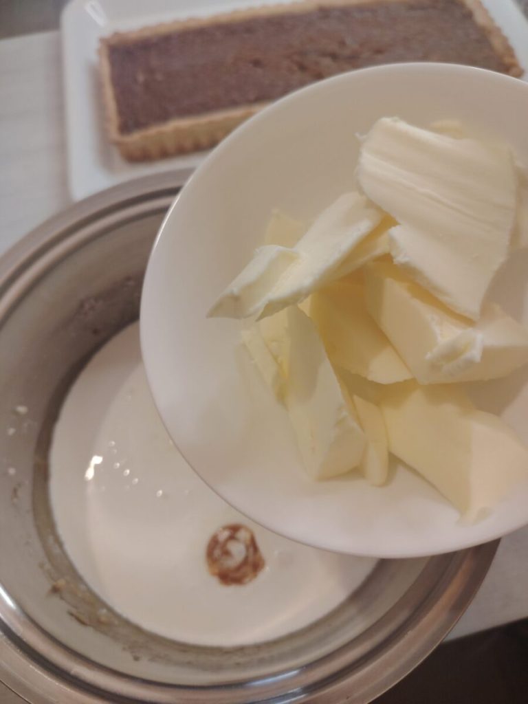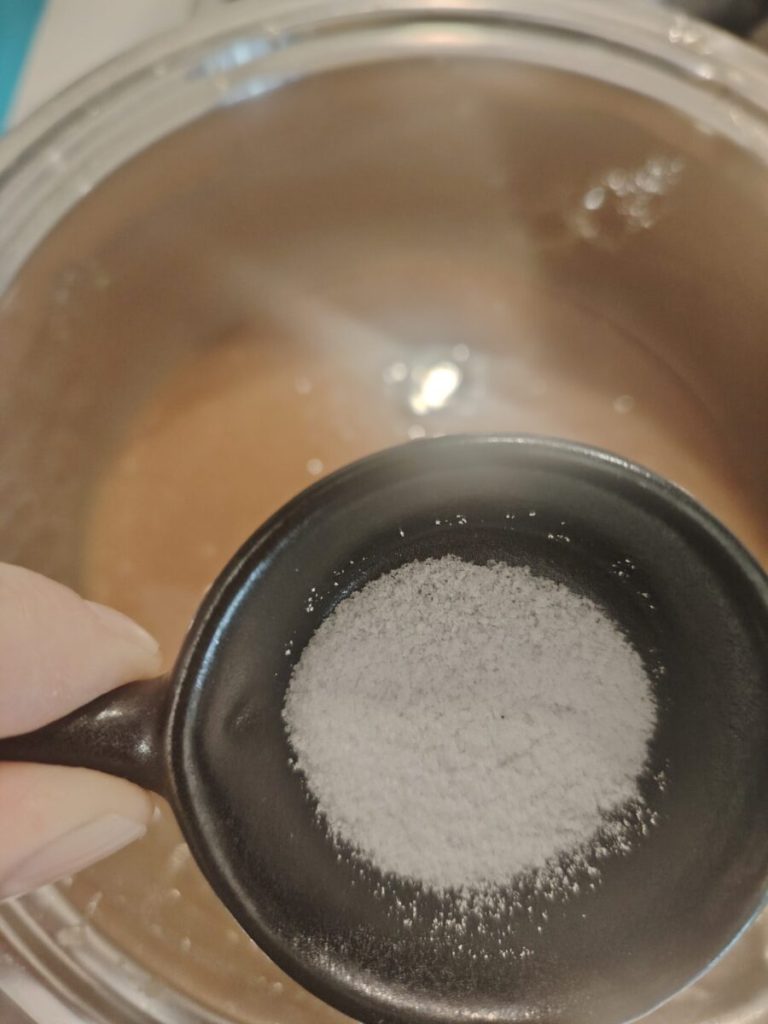 When everything is melted, add the salt and whip a little with a hand whisk or an immersion blender