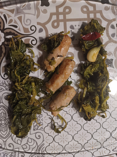 Sometimes spaghetti was added, while on the days of pig slaughter, sausage appeared more often at home, and ended up flavoring the spicy tops sautéed in olive oil that he brought from the village.