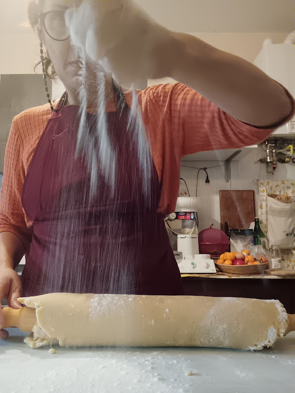 After the time has elapsed, roll out the pastry on the pastry board