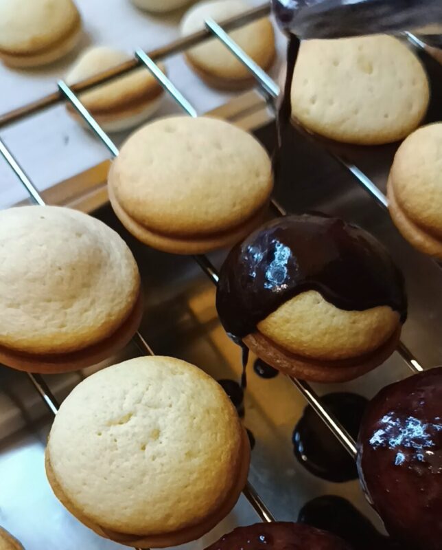 finally, add the hazelnut flour or paste, stirring gently. With the help of a piping bag, distribute the cream on half of the kisses and pair