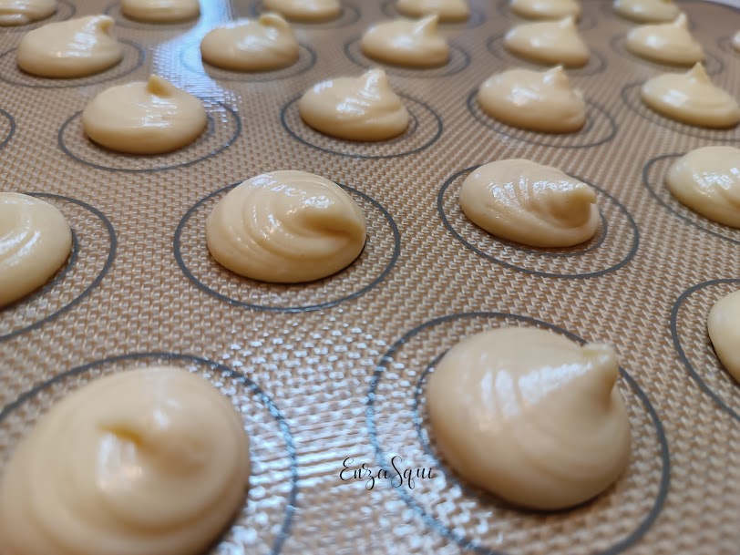 Using a piping bag, place small mounds in the center circle; as they bake, they will fill the outer circle