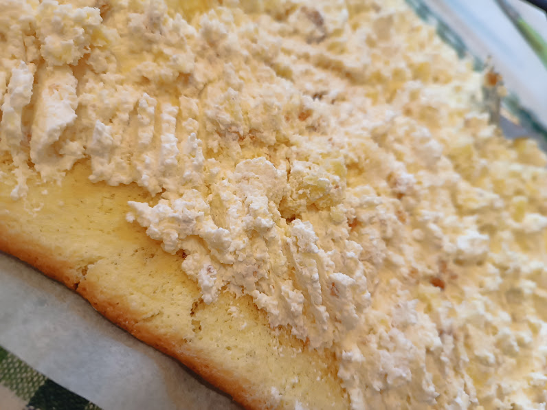 After preparing the sponge cake, while waiting for it to cool, whip the cream and add the sieved ricotta, powdered sugar, and vanilla; crumble the sponge cake and mix it with the ricotta and cream mixture, mix carefully and leave in the refrigerator until use