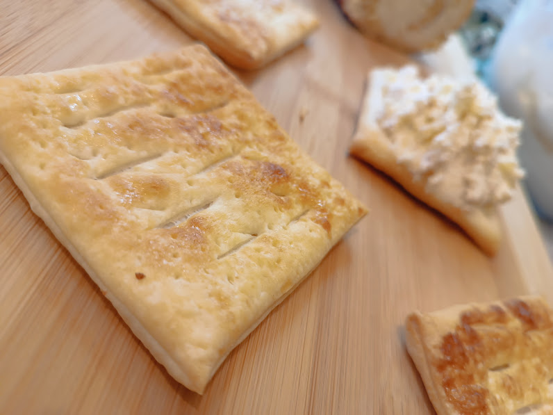 Bake in a static oven, (I wanted to try in a multi-purpose air oven, ha ha… my puff pastry squares were beautiful, but they flew lightly in the oven). Fill the squares with the ricotta cream and cover, dust with powdered sugar