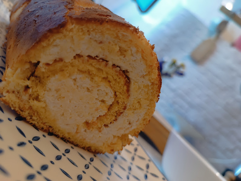 With the same filling, which was actually supposed to be the sole recipient, I filled the roll after spreading some apricot jam, which you don’t see in the photo because I forgot to take it