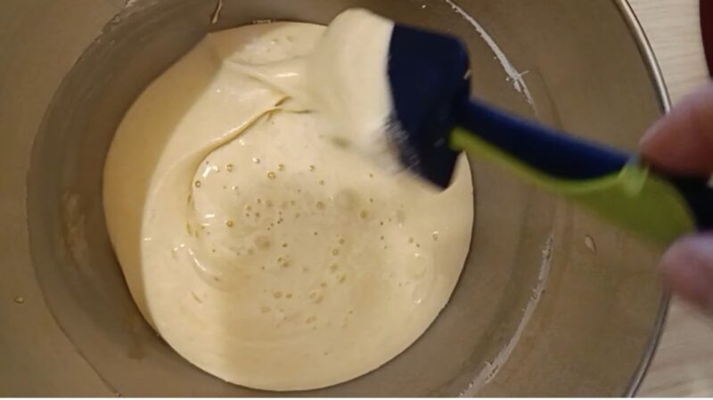 • Stir with a spatula to thoroughly mix the flour left at the edges