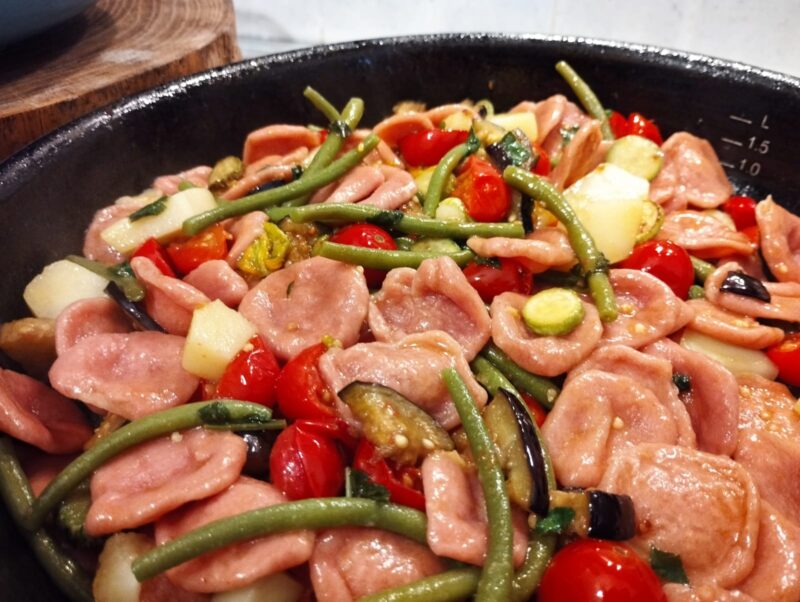 In this recipe, I used seasonal vegetables, even turnips, which in truth are already finished in the garden, but I dried a little to make powder just to color the pasta