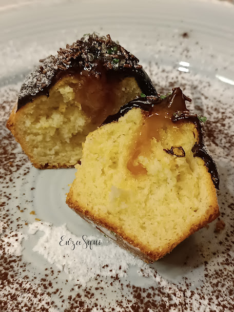 Having made muffins, I hollowed them in the center and added a teaspoon of jam, decorated then with chocolate and powdered sugar