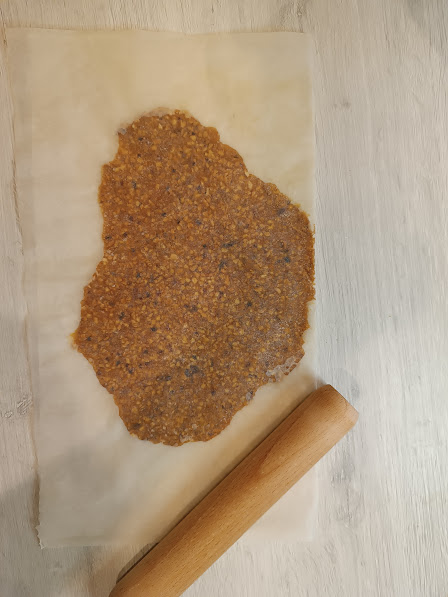 On parchment paper, cover with another sheet and flatten with the help of a rolling pin; once cold, reduce it to granules with the help of a coffee grinder or kitchen robot, or meat tenderizer