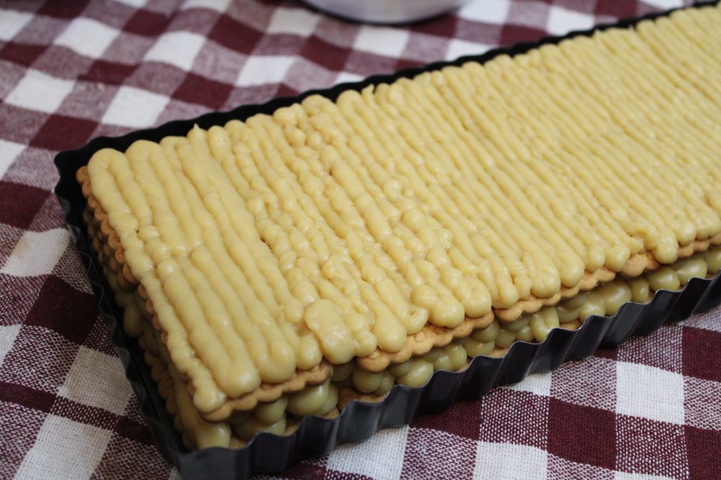 • Make a thin first layer of cream using the pastry bag, soak the biscuits in the coffee, and arrange them in the mold or baking dish. Alternate with the zabaglione until the ingredients are used up.