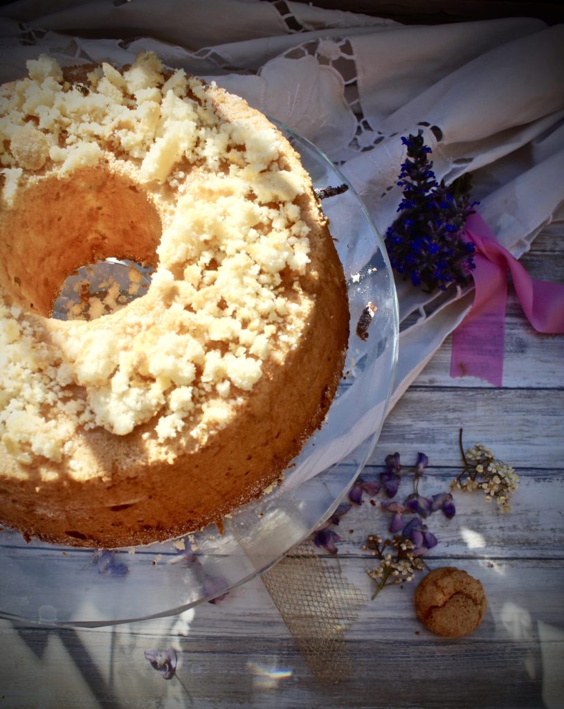 When it’s cold, brush the top with a thin layer of melted butter and sprinkle crumbled amaretti over it.
