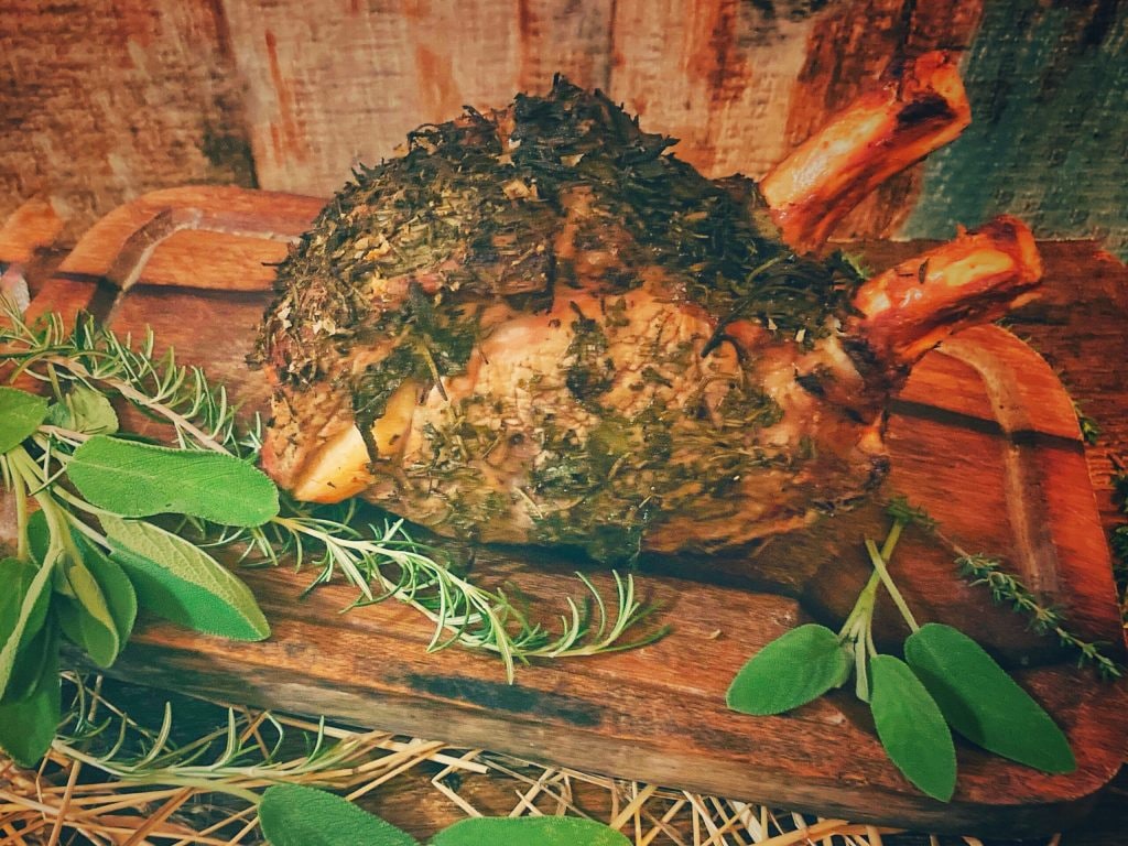 The traditional preparation involves rubbing the outside of the roast with salt and seasonings and slowly roasting with dry heat.