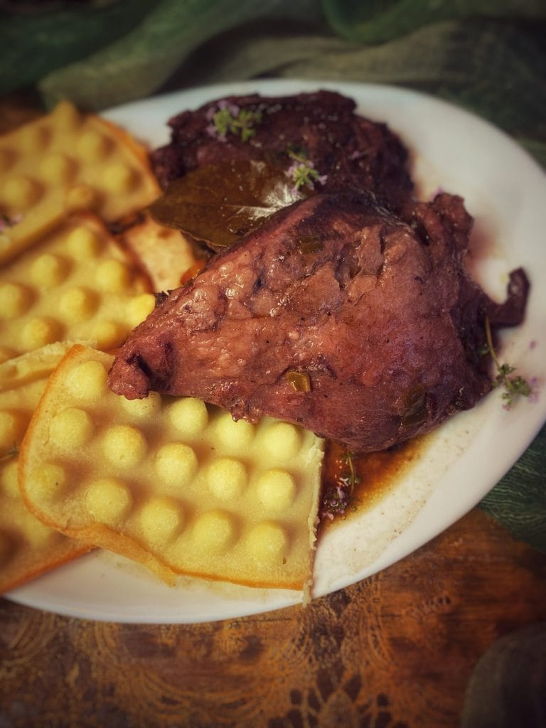 Finally, I served the CBT beef cheek with a gluten-free savory waffle, baked in the oven.