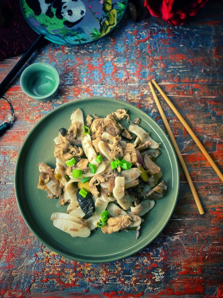 The Shanghai nian gao is better known as rice gnocchi, not to be confused with the Nian gao – New Year’s rice cake.