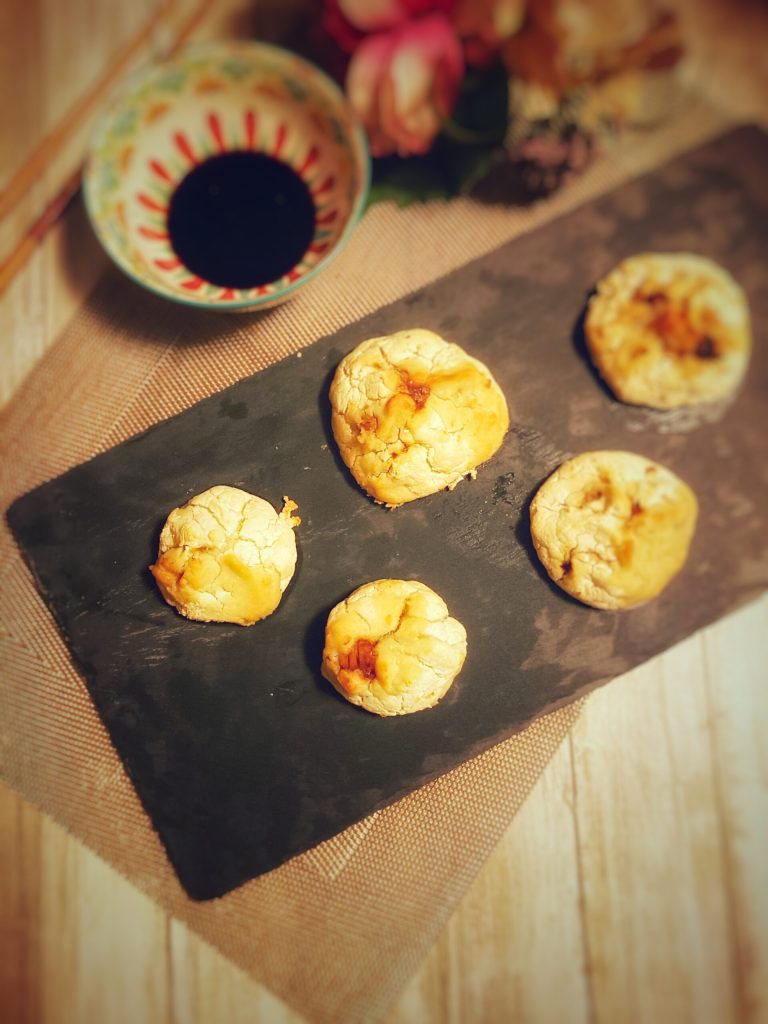 The filling “char siu” is tender pork shoulder, sweet and slowly roasted.