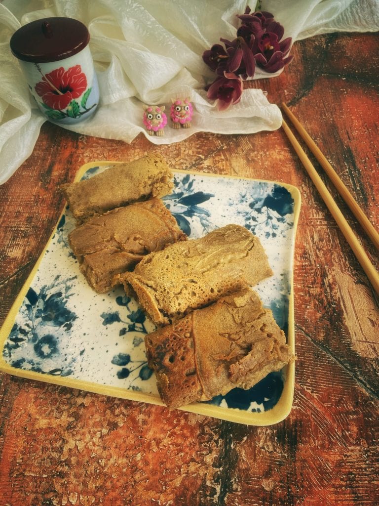 The Chinpin (チンピン) or Chinbin (チンビン) is a traditional sweet from Okinawa, similar to a rolled crêpe, made with flour and dark brown sugar (kokutō).