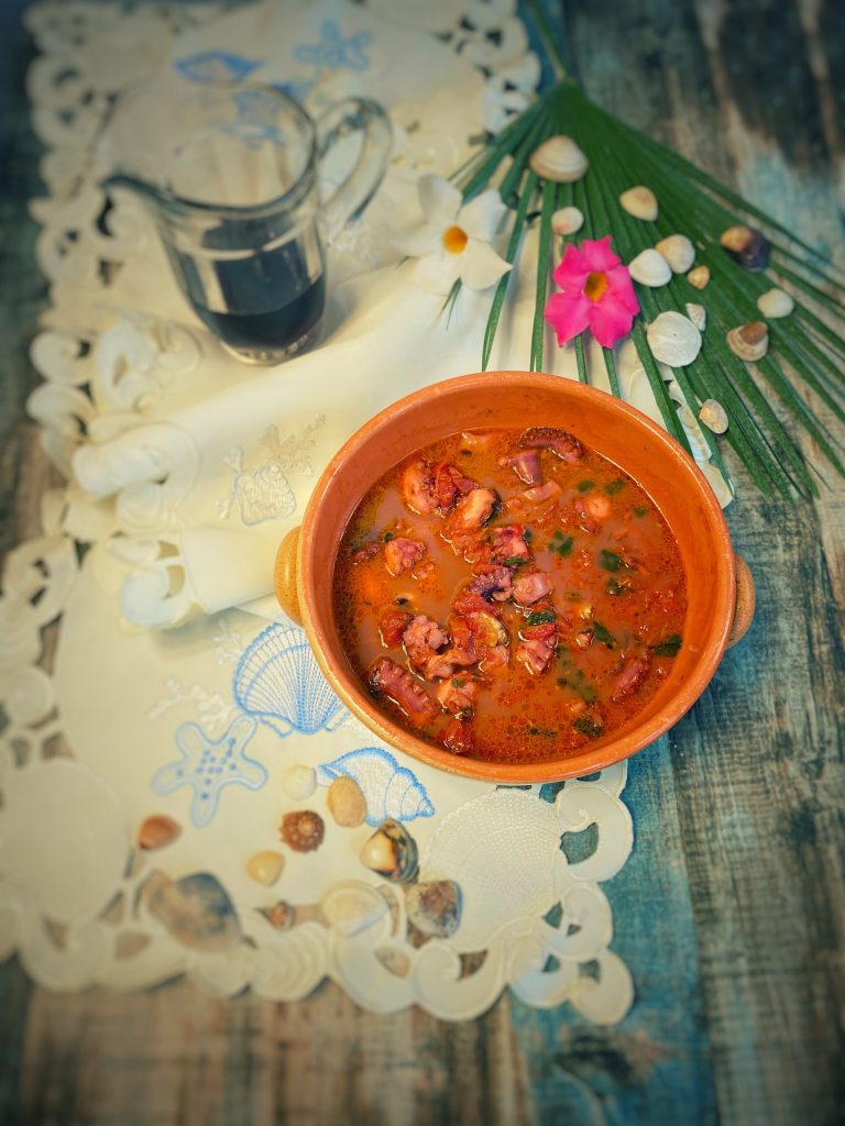 Civet de zourite is a Creole dish based on octopus, onions, spices, and red wine from the island of La Réunion, where zourite means “octopus” in Creole.