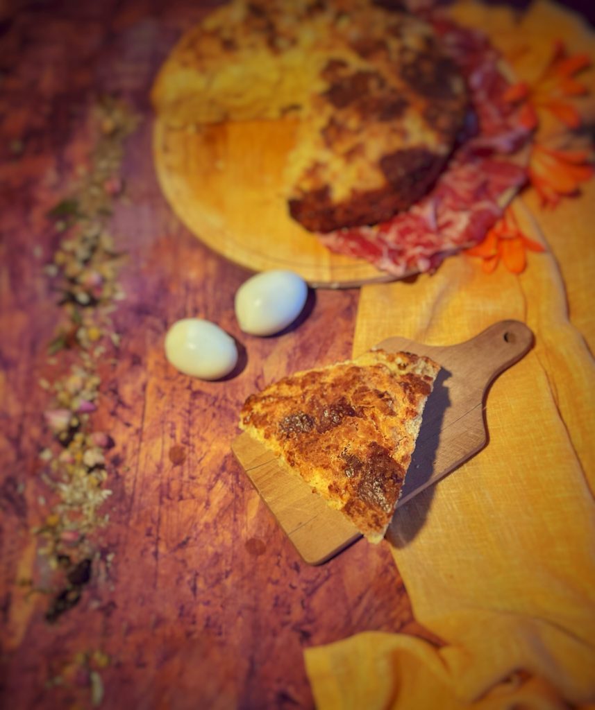 It is distinguished by a savory dough rich in eggs and cheeses, traditionally eaten during the Sunday Easter breakfast or on the Monday picnic (Pasquetta).