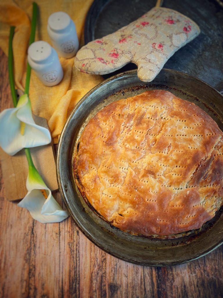 This is the traditional recipe, gluten-free, prepared exclusively with chard and lard placed on top of the upper crust, as per historical peasant custom.